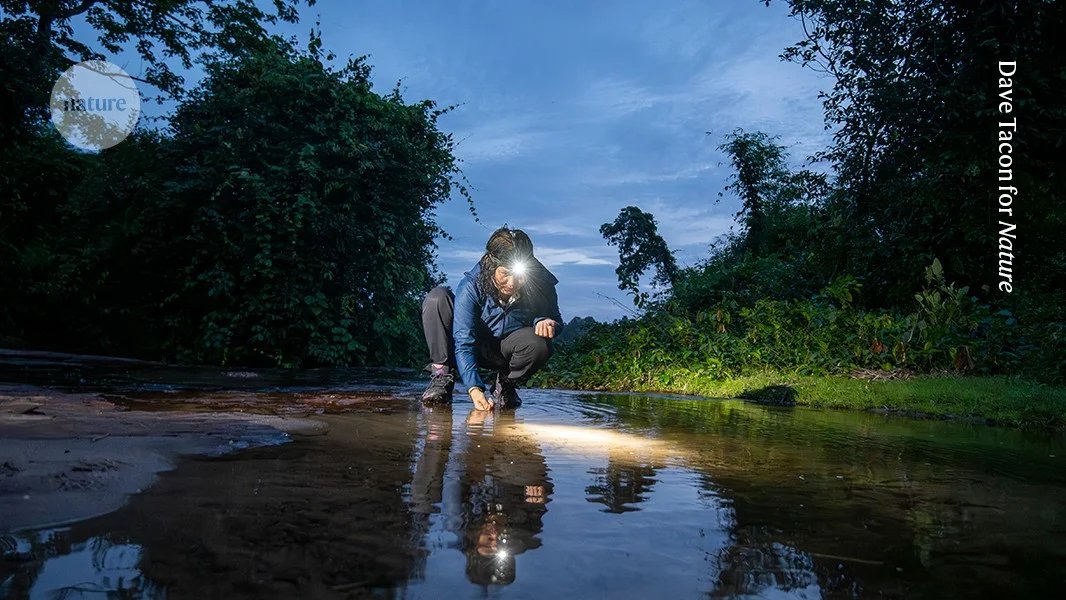 في هذه الصورة، أقوم بمسح سكان فيجيرفاريا ليمنوتشاريس الضفادع على طول جدول خارج فينتيان، لإجراء مسح ميداني. أقوم بتسجيل عدد البالغين، والضفادع الصغيرة، والبيض، ونداءات الضفادع، بالإضافة إلى تتبع العوامل البيئية الأخرى.