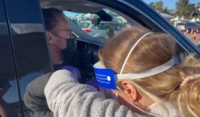 أرنولد شوارزنيغر يتلقى لقاح فيروس كورونا في السيارة
